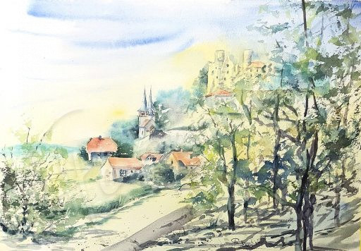 in Krombach, Aquarell, verkauft, Karte erhältlich